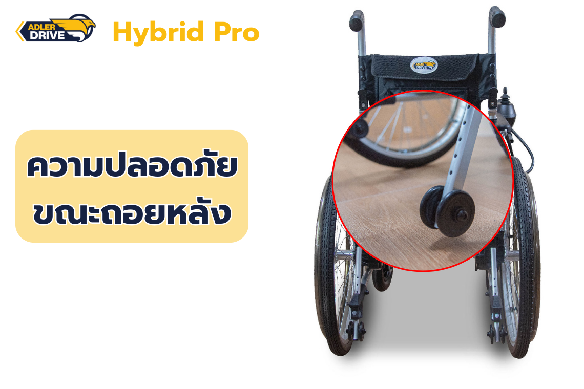 ระบบความปลอดภัยขณะถอยหลัง มีล้อกันหงาย สามารถปรับระดับได้ ช่วยพยุงไม่ให้หงายหลังเวลาขึ้นทางลาดชัน