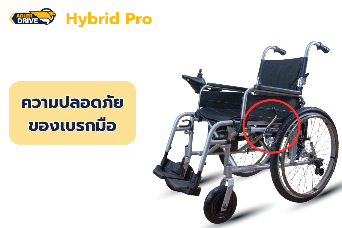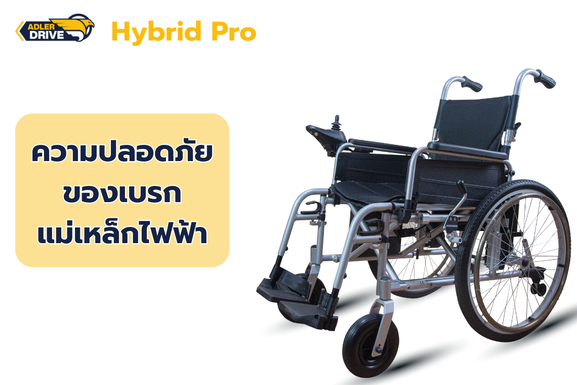 รถเข็นไฟฟ้า ยี่ห้อ Adler Drive รุ่น Hybrid Pro ถือว่าเป็นรถเข็นอีกยี่ห้อที่มีการออกแบบมาเพื่อช่วยเพิ่มความสะดวกให้แก่ผู้ใช้งาน ด้วยการออกแบบล้อที่มีขนาดใหญ่มีทางเลือกให้กับผู้ใช้งานสามารถใช้งานได้ถึง 3 แบบ การใช้งานด้วยระบบไฟฟ้า การควบคุมผ่านล้อหลังโดยผู้ใช้งานและการเข็นรถเข็นผ่านผู้ช่วยผู้ใช้งาน มาพร้อมระบบเบรกแบบแม่เหล็กไฟฟ้า เสริมด้วยระบบแบรกมือ เหมาะมากสำหรับผู้ที่กำลังมองหารถเข็นไฟฟ้า ฟังก์ชันการใช้งานหลากหลาย ราคาเข้าถึงง่าย และยังได้รับมาตรฐานคุณภาพจากประเทศสหรัฐอเมริกา FDA และการรับรองผลิตจากโรงงานที่ได้รับมาตรฐานระดับสากล ISO และมาตรฐาน CE