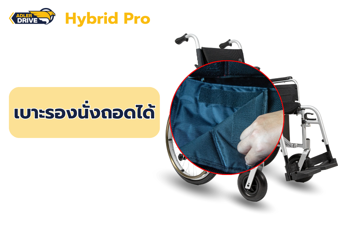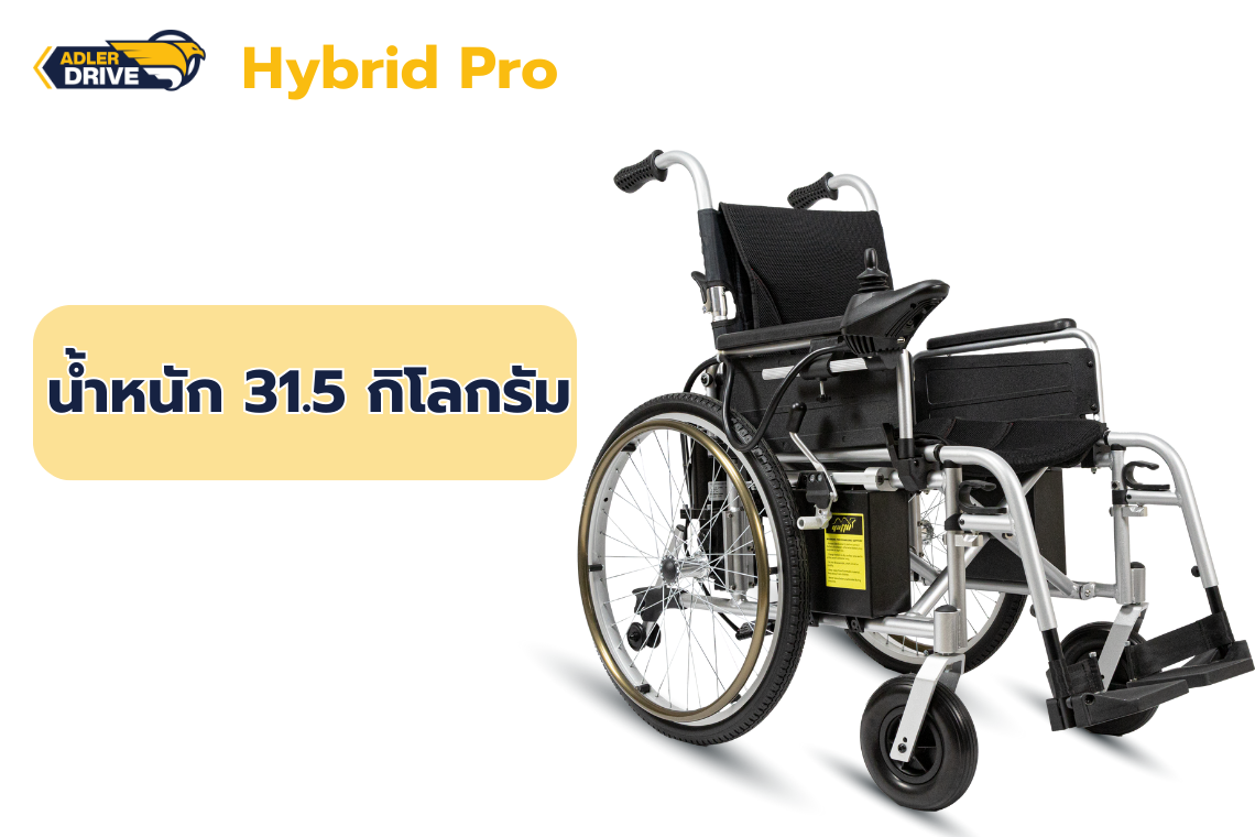 รถเข็นไฟฟ้า ยี่ห้อ Adler Drive รุ่น Hybrid Pro เป็นรถเข็นสำหรับผู้ป่วยหรือผู้สูงอายุ โครงสร้างรถเข็นผลิตจากอลูมิเนียมเกรดดีที่นิยมใช้ในท่าอากาศยาน มีความแข็งแรง ทนทานต่อการใช้งาน มีการออกแบบให้ล้อหลังมีขนาดใหญ่ เพื่อให้สามารถใช้ได้ทั้งระบบไฟฟ้าและระบบแมนนวล เบาะที่กว้างเป็นพิเศษเพื่อให้ผู้ใช้งานรู้สึกสบาย มาพร้อมแบตเตอรี่ลิเธียมและระบบรักษาความปลอดภัยต่างๆ อีกทั้งยังสามารถพับเก็บได้ สะดวกต่อการพกพา