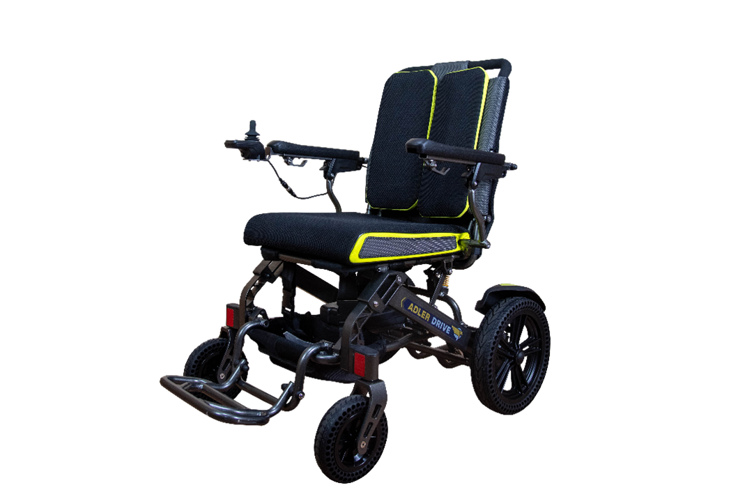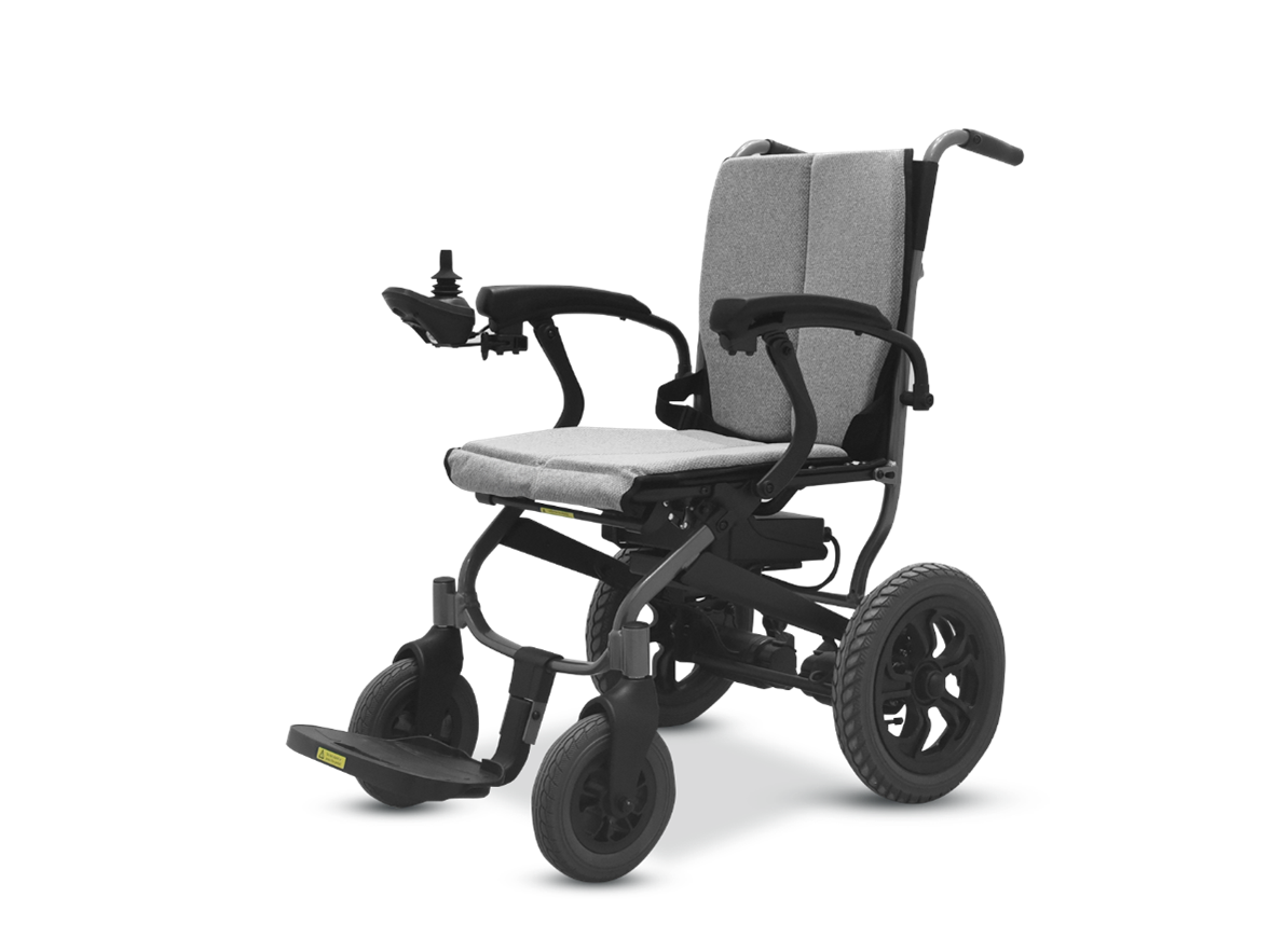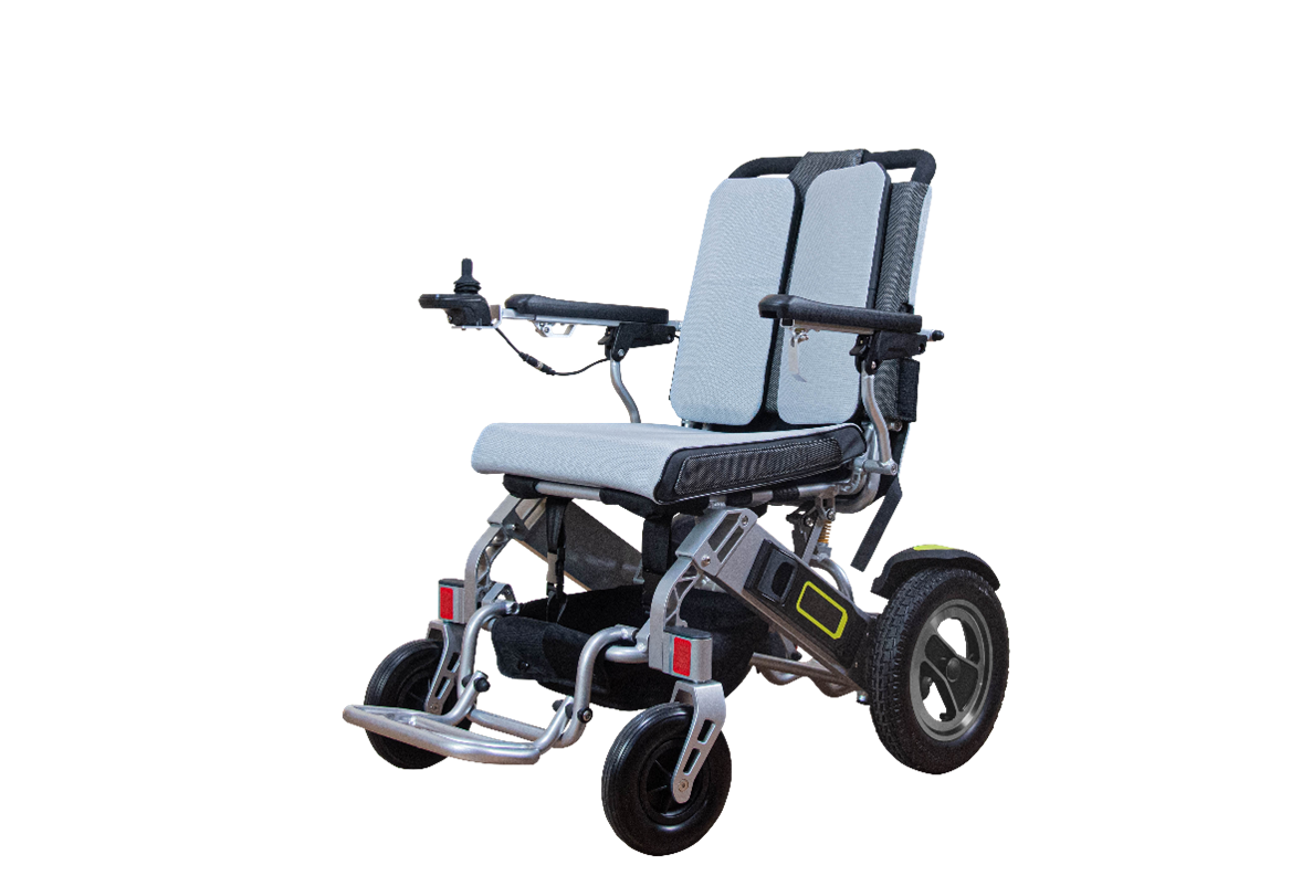 วีลแชร์ไฟฟ้าที่ทำจากอลูมิเนียม แบบพิเศษเกรดท่าอากาศยาน แข็งแรงทนทาน น้ำหนักเบา เบาะนิ่ม ดีไซน์ทันสมัย มีล้อกันหงาย ที่วางแขนสามารถพับเก็บเพื่อความสะดวกสบายมาก เหมาะสำหรับการนำขึ้นเครื่องบิน แถมมีสติ๊กเกอร์สะท้อนแสงรอบตัวรถเข็น สำหรับใช้งานในตอนกลางคืน เพื่อความปลอดภัยของผู้ใช้งาน พร้อมระบบรักษาความปลอดภัยที่มาเตือนระหว่างถอยหลังอัตโนมัติและเข็มขัดนิรภัย 2 ระดับ คือ บริเวณเอว และเข่า สามารถนำขึ้นเครื่องได้โดยการถอดแบตเตอรี่แล้วพกติดตัวเอาไว้ ตัววีลแชร์พับเก็บได้ง่าย ขนาดกะทัดรัด ระบายอากาศได้ดี แบตเตอรี่ลิเธียม 24 โวลต์ 6 แอมแปร์ สามารถรองรับน้ำหนักได้มากถึง 150 กก. น้ำหนักของตัววีลแชร์คือ 27 กก.