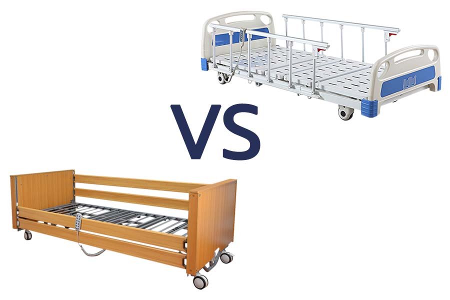 ในกรณีที่เราเลือกวัสดุของเตียงนั้น โครงสร้างหลักจะสร้างมาจากอะลูมิเนียมแข็งแรง ส่วนหัวเตียง ท้ายเตียง และราวกั้นนั้นจะถูกผลิตจากพลาสติก หรือไม้อัด เป็นส่วนที่เราจะต้องเลือก เนื่องจากวัสดุทั้งสองอย่างนี้จะทำให้เกิดรูปร่างที่แตกต่างกัน โดยพลาสติกนั้นจะขึ้นรูปแบบที่ทันสมัยมีที่แบบราวกันที่คล้ายคลึงกับที่เราพบเห็นในโรงพยาบาลทั่วไป รวมไปถึงเป็นลักษณะคล้ายปีกที่จะดูทันสมัย แต่จะดูค่อยข้างทึบ หรือปิดบังการมองเห็นด้านข้าง เหมาะสำหรับผู้ที่ไม่ต้องการเห็นพยาบาลหรือผู้ดูแลจัดเตรียมอุปกรณ์ แต่จะไม่เหมาะกับคนที่ไม่ชอบที่แคบ แต่ถ้าหากเตียงแบบพลาสติกนั้นอาจจะทำให้ผู้ป่วยรู้สึกเหมือนอยู่โรงพยาบาลได้ ลองมองหาเป็นเตียงแบบไม้นำไปใช้ในบ้านแทนเพื่อทำให้กลมกลืนกับบ้านของเรามากกว่า ความสบายใจของผู้ป่วยก็มากขึ้นอีกด้วย